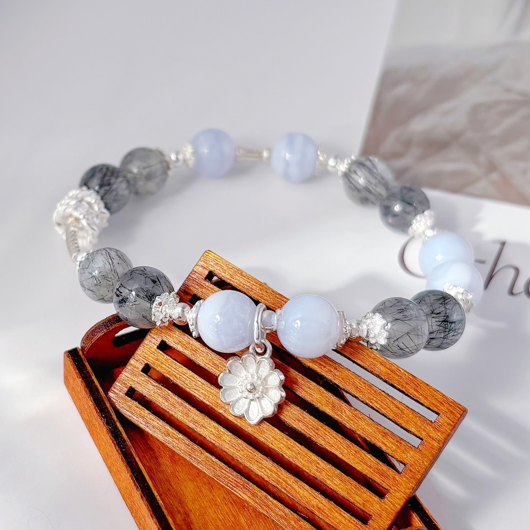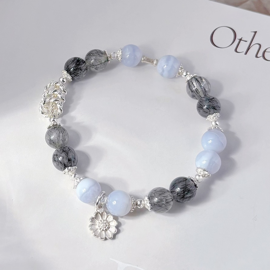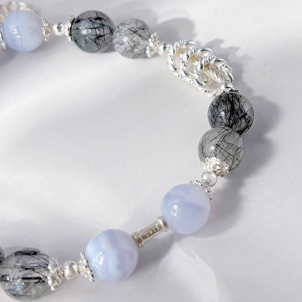 ◈ 材料:925 純銀飾、8mm黑髮晶、8mm藍紋瑪瑙