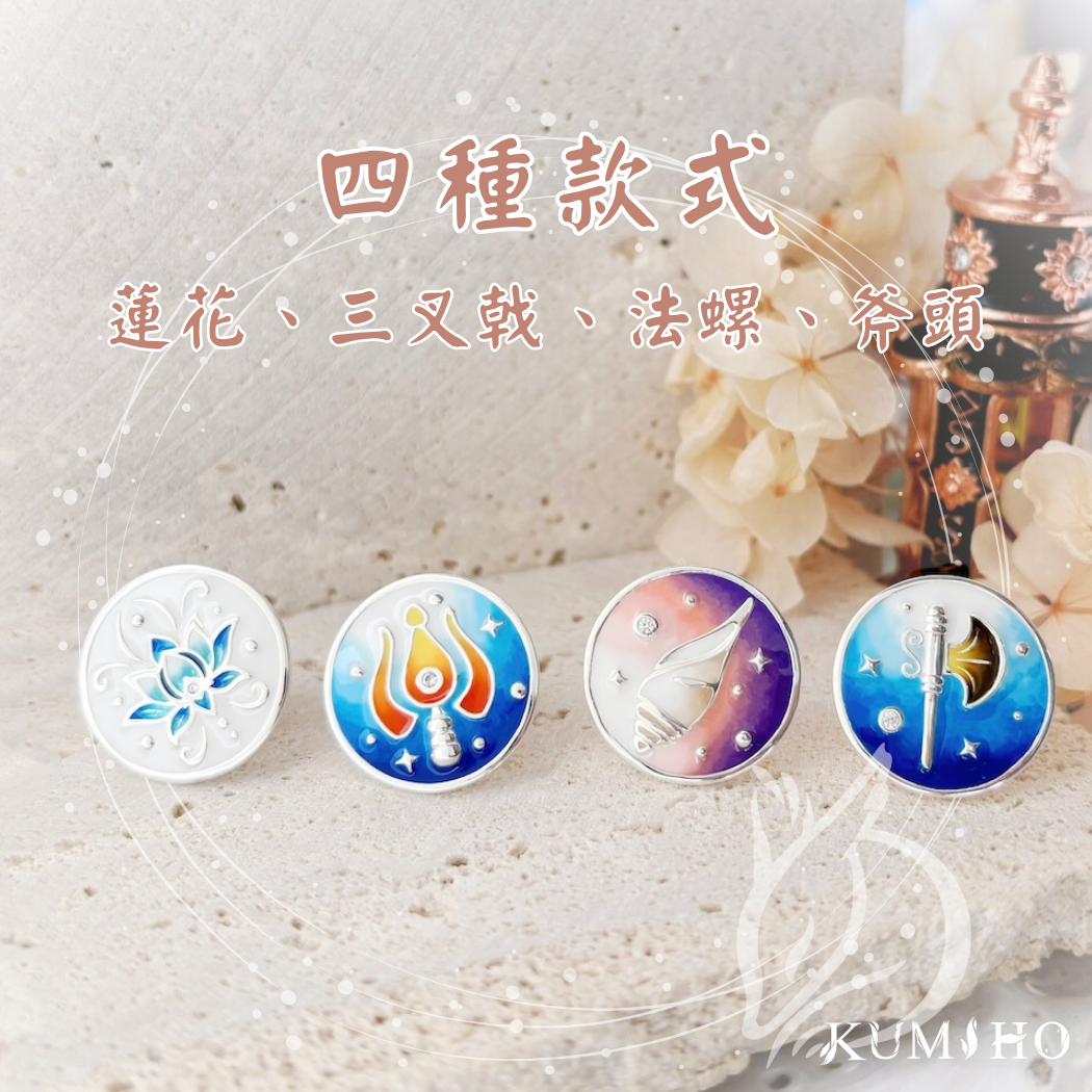 斧頭在神話中象徵斬斷無明、障礙與執著。配戴這枚經過加持的琺瑯純銀胸針,能祈求象神協助「除障開路、啟動智慧」,特別適合尋求新開始或面臨挑戰的人。