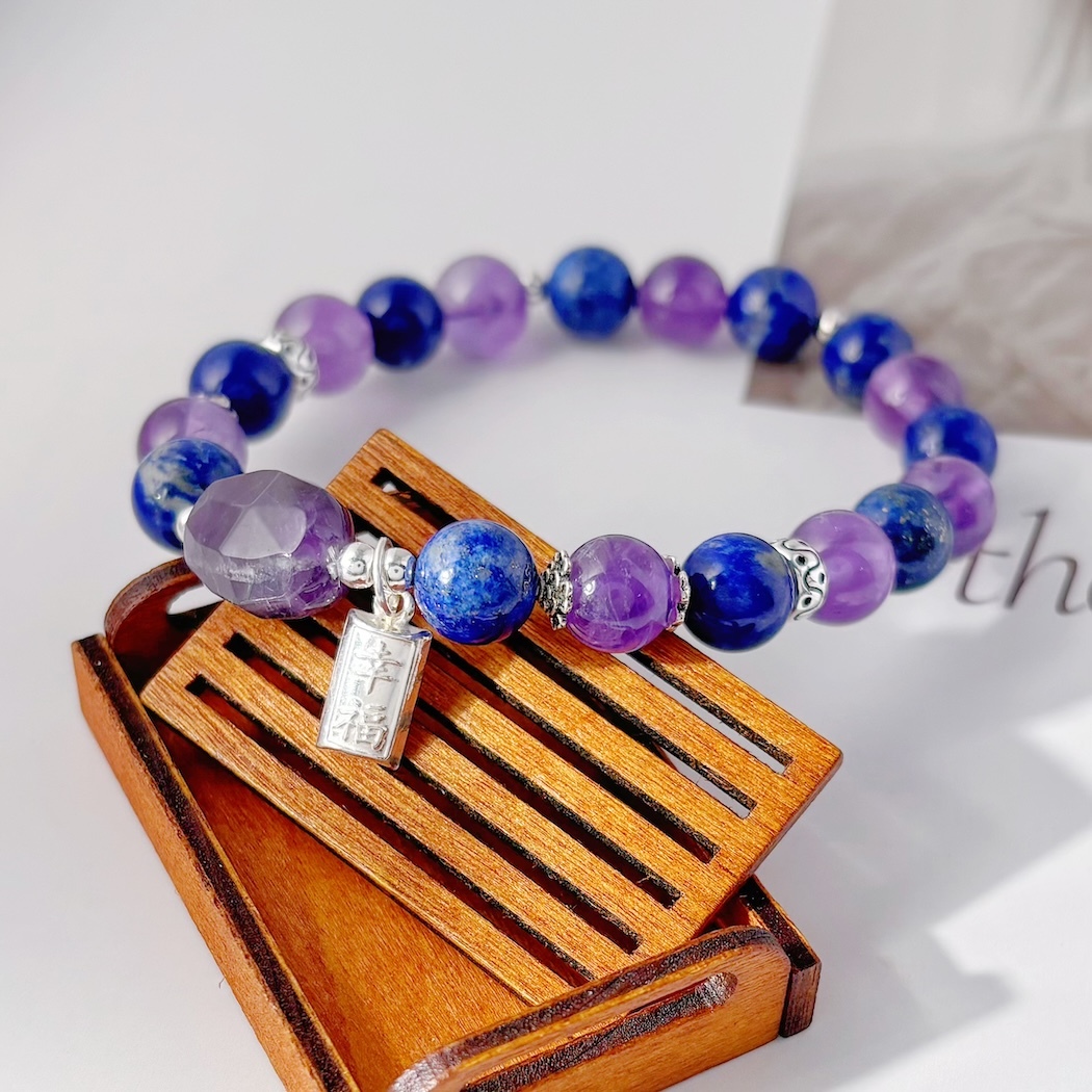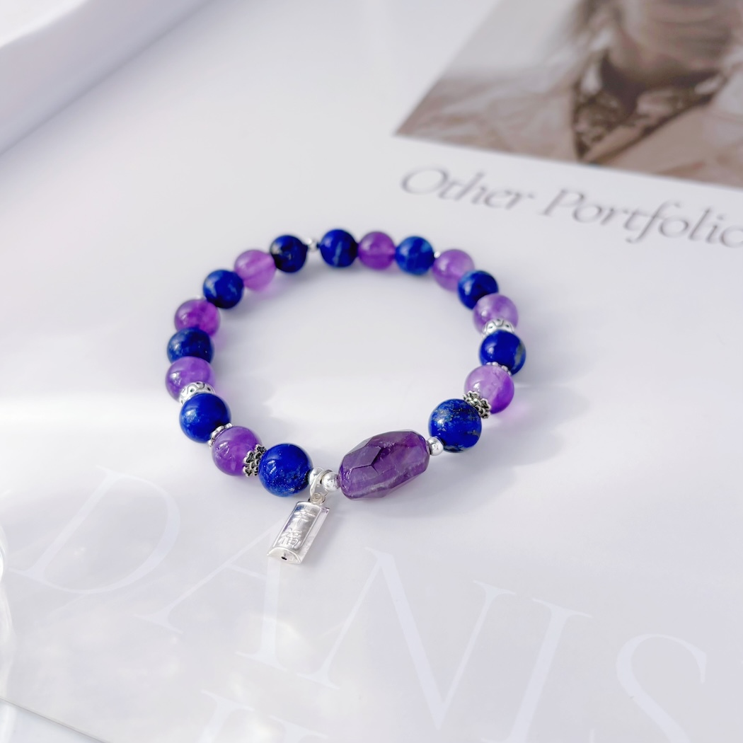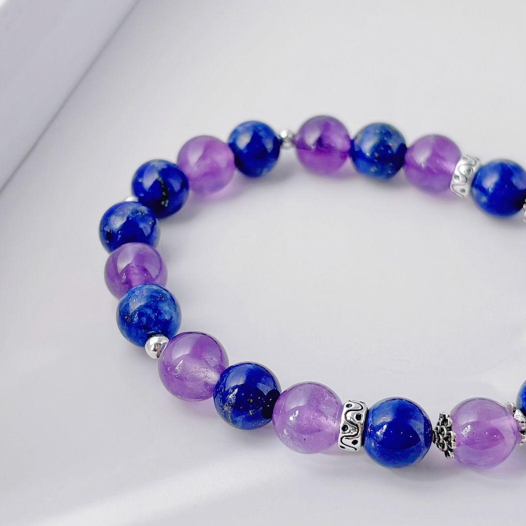 ◈ 材料:925 純銀飾、隨形紫晶、8mm紫晶、8mm青金石