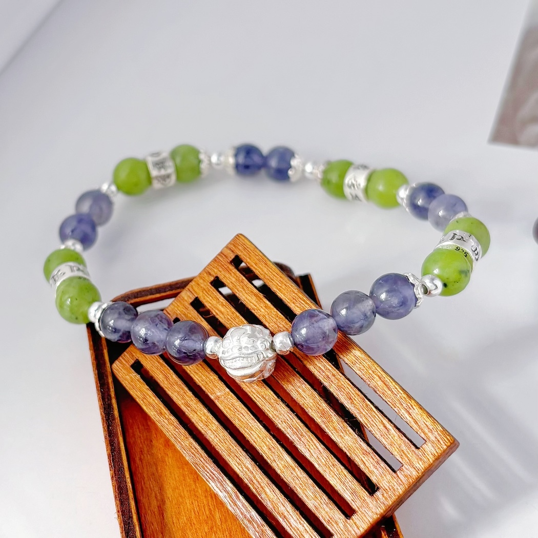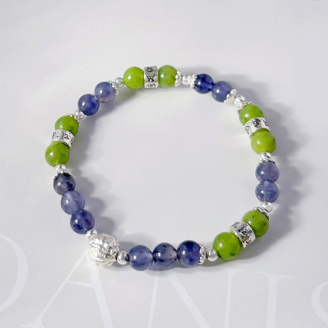 ◈ 材料:925 純銀飾、6mm加拿大碧玉、6mm菫青石
