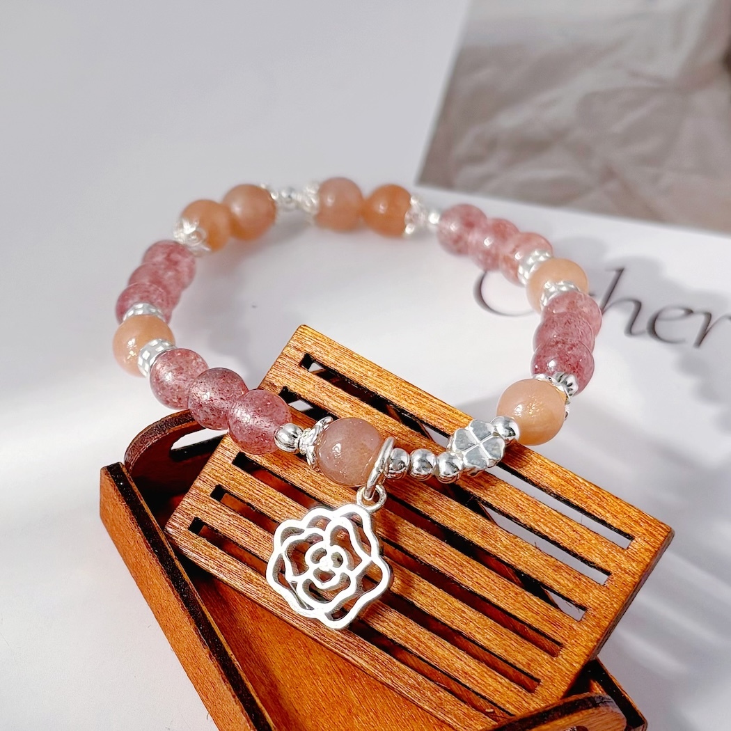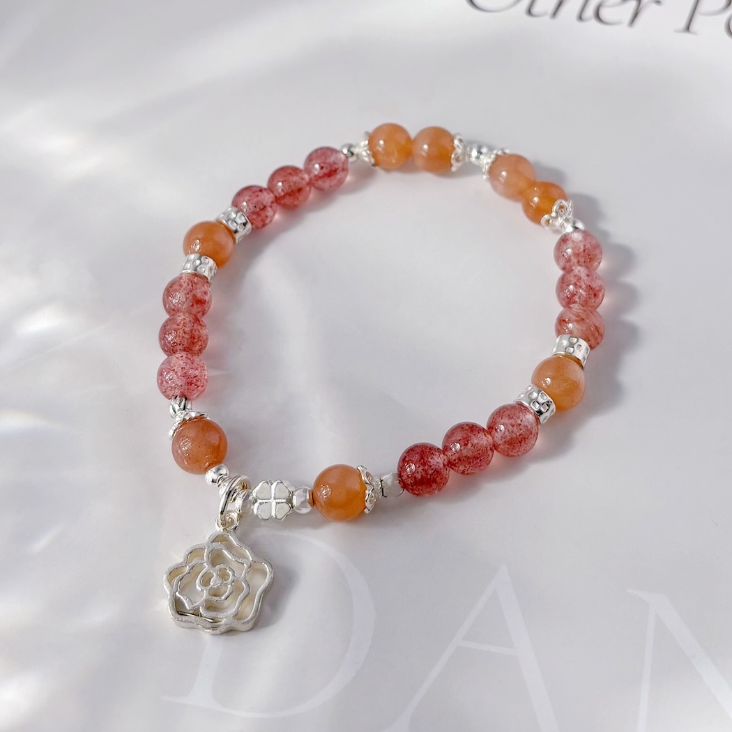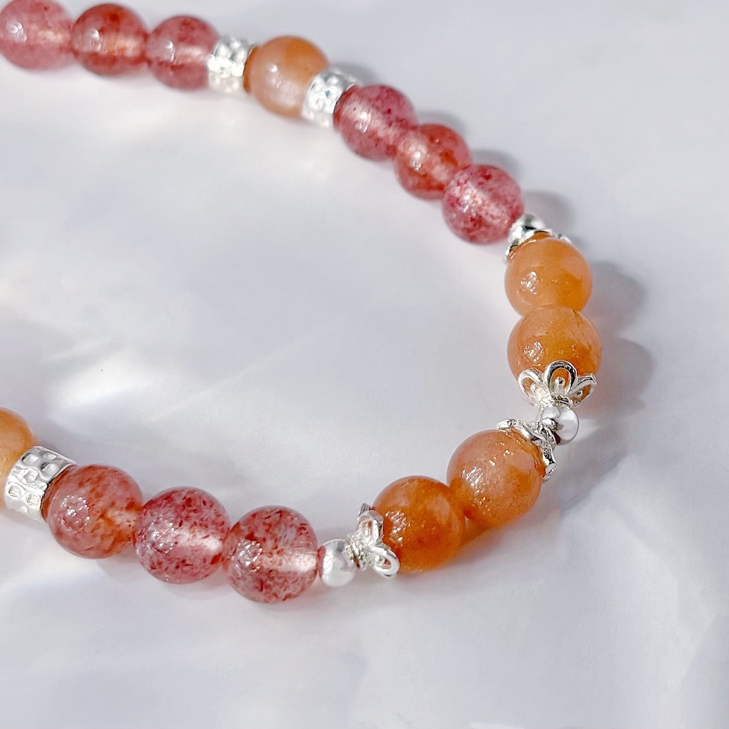 ◈ 材料:925 純銀飾、6mm老草莓晶、6mm橙月光石